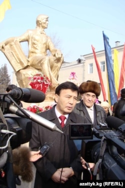 - Бул алааматта Советтер Союзунан 27 миллион адам курман болду. Дүйнө жүзү боюнча 50 миллиондон ашуун киши окко учту. Ошонун ичинен Ош облусунан 85 миң адам өз эрки менен жоого каршы аттанып, анын жыйырма беш миңден ашууну Ата Журтуна кайтпай калды. Эгерде ушул Жеңиш болбогондо, Советтер Союзунун тагдыры таптакыр башка нукка бурулмак. Мына, биз, Кыргызстан канчалык талашып-тартышсак дагы мамлекет катары өзүнчө түтүн булатып келатабыз. Дал ушуга согуш ардагерлеринин кошкон салымы абдан чоң деп эсептейм.
