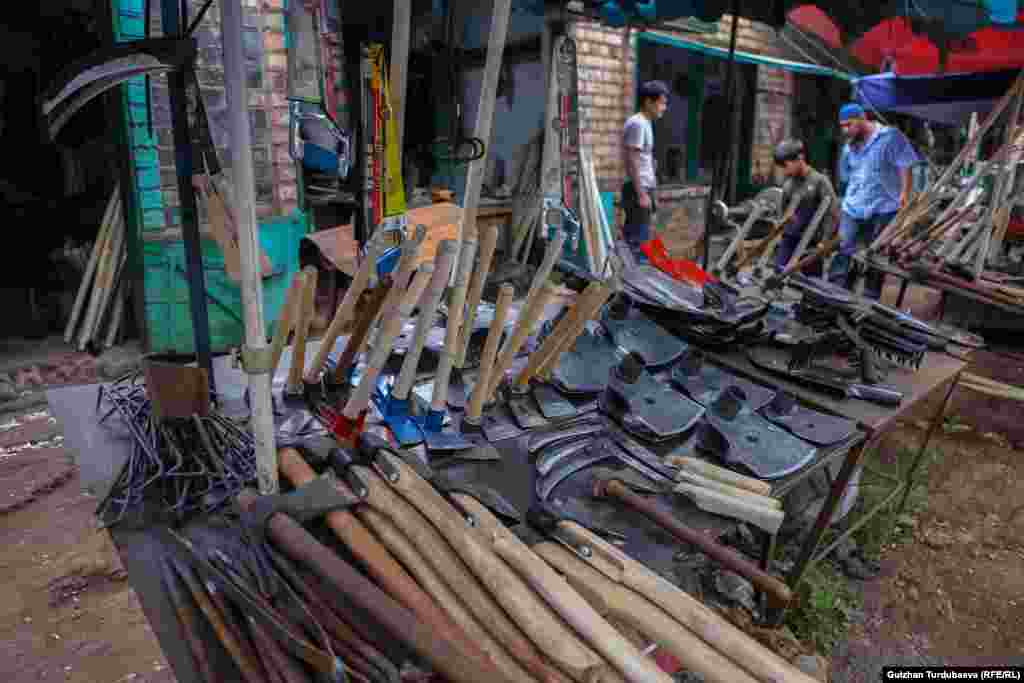 Базарда көбүнчө кетмен, күрөк, бычак, балка, балта, жүгөн, үзөңгү сыяктуу үй-чарба тиричилигине керектелүүчү буюмдардын бардык түрү жасалат.