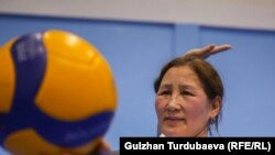 Максаткан Жайчибекова жумасына үч жолу 10-15 чакырым жолду басып машыгууга Бишкекке келип турат. Жолдун алыстыгы анын волейбол ойнойм деген каалоосуна жолтоо боло алган жок. СүрөтGulzhan Turdubaeva (RFE/RL)