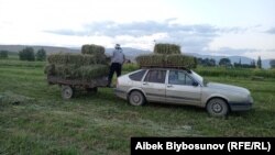 Алай районунун тургуну Медербек Сейитов өзү чапкан чөп аз болгондуктан, базардан сатып алган.