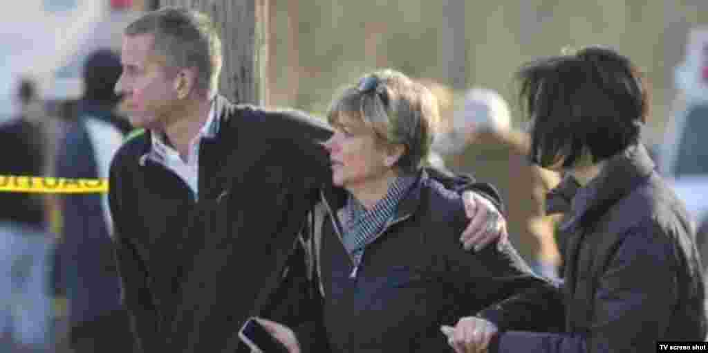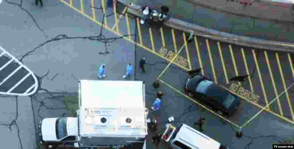 Ньютаундун жашоочулары кандуу окуя болгон жерге гүл алып келишүүдө.