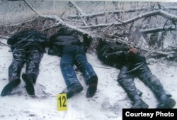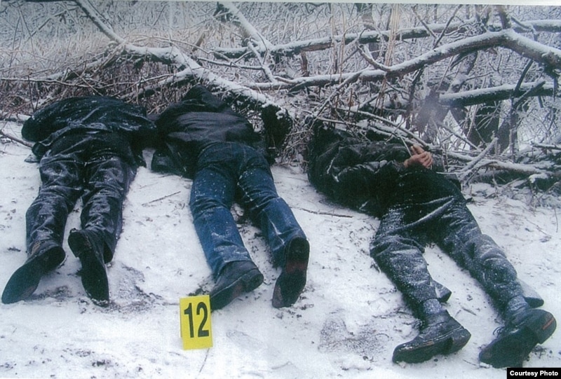 Казакстанда киши колдуу болголн оппозиция лидери Алтынбек Сарсенбаевдин дагы эки киши менен өлүгү,  Феврал, 2006-жыл.