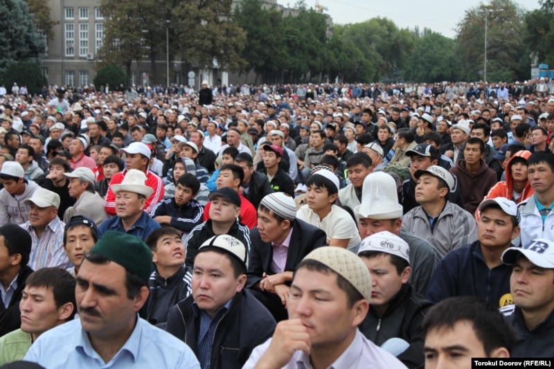 Бүгүн Бишкектин эски аянтында айт намазы адаттагыдан эрте, таңкы саат жетиден өткөндө башталды. Айрымдар кечээ түнү муфтийдин кайрылуусун угуп келишсе, бүгүн айт экенин кокусунан гана билип, намазга шаша-буша жетишип калгандар бар.